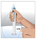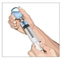 Turn the vial upside down and pull back on the plunger to pull back on the plunger to pull the solution into the syringe(s).