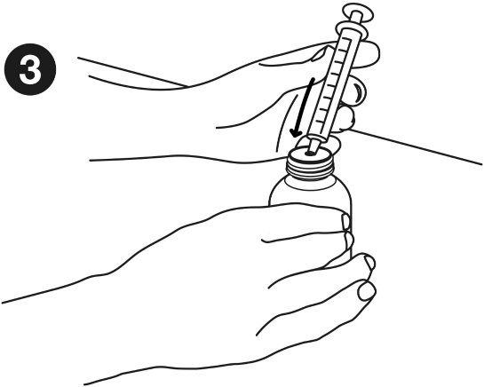 Each pack contains a bottle adapter, two green 3 mL oral syringes with 0.1 mL graduations, and two purple 6 mL syringes with 0.2 mL graduations and the medicine bottle, either: