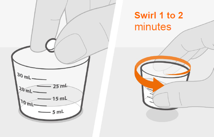 The dispersible tablets can be dispersed in clean drinking water using the supplied