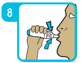 Immediately insert the capsule into the inhaler chamber. Replace the mouth piece and screw it on firmly until it stops. Do not over tighten.