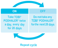 Using your medicine at the same time each day will help you remember when to take it. TOBI PODHALER is taken in a 28 day cycle.