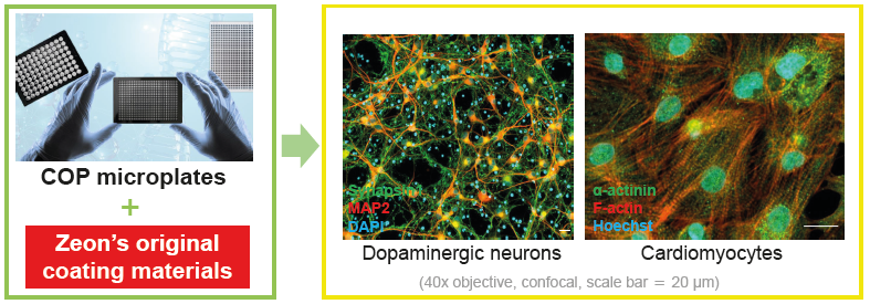 • We have developed COP microplates coated with Zeon's original coating materials.