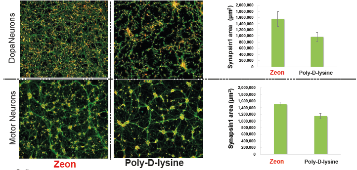 We have developed ready-to-use COP* microplates coated with Zeon's original coating materials for adherent cell culture and cell-based assays. Our plates are applicable to various type of cells including cell lines, primary cells and neural cells. The features of our plates are good bottom flatness, low autofluorescence, and excellent storage stability at room temperature for 12 months.