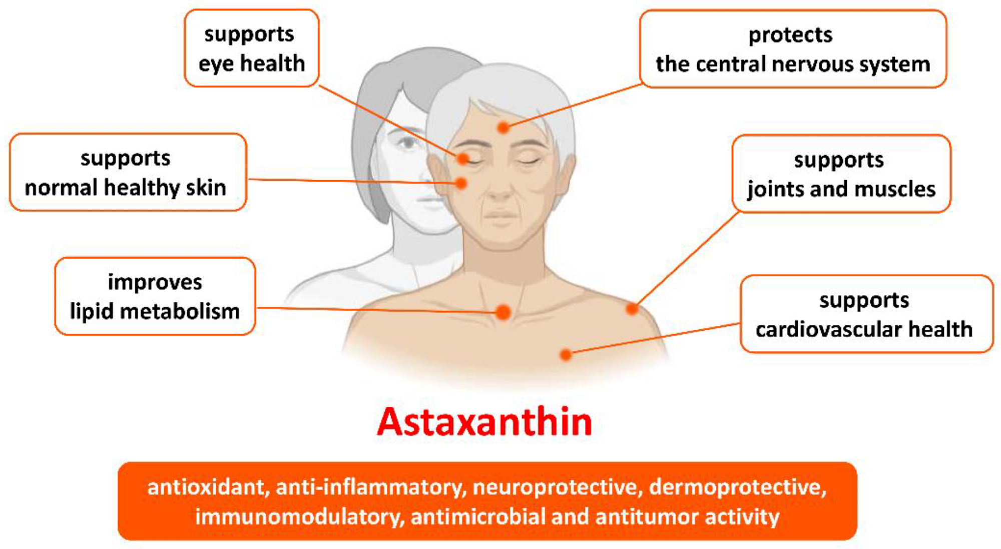 Astaxanthin and Human Health: Evidence on Skin, Vision, Brain, and Aging