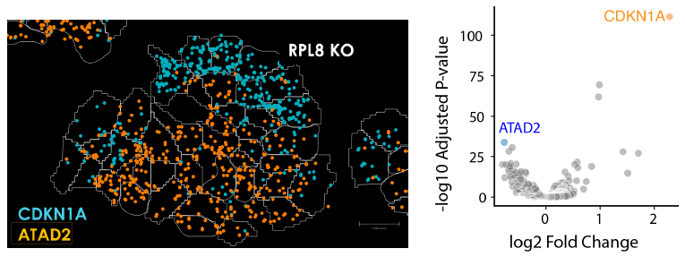 Figure 6. Visualization of ribosomal gene RPL8 perturbation impact on RNA. Perturbation of ribosomal gene RPL8 dramatically upregulates CDKN1A and downregulates ATAD2. Image Credit: Image courtesy of Avtar Singh et al., in partnership with ELRIG (UK) Ltd.