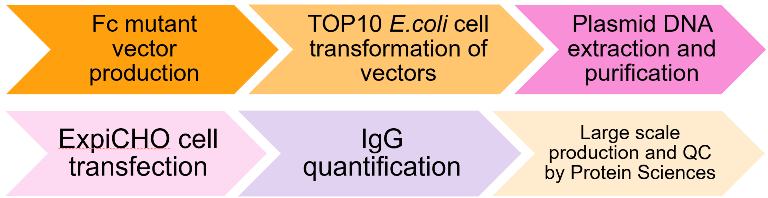 An antibody activates the immune system's cellular and cytoplasmic defence to combat a pathogen. This occurs via interactions of the Fc (CH2-CH3) region to activate three effector function pathways and impacts half-life of antibody (Figure 1). These can be modulated via several Fc mutations to achieve bespoke effects, specific to project needs.