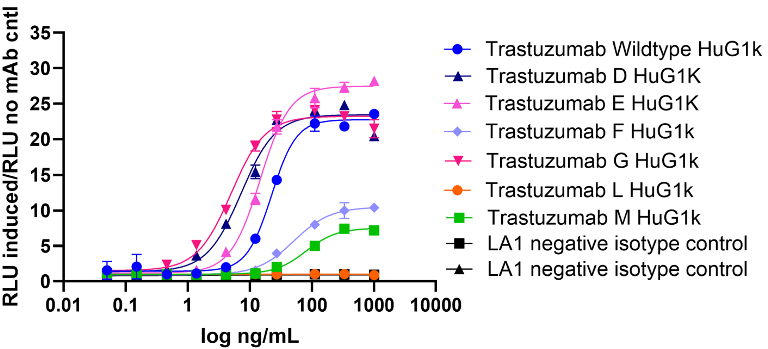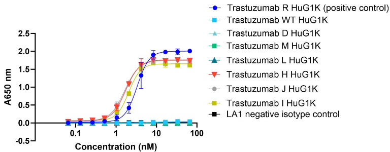 • All Trastuzumab Fc mutants retained binding to their target, HER2.