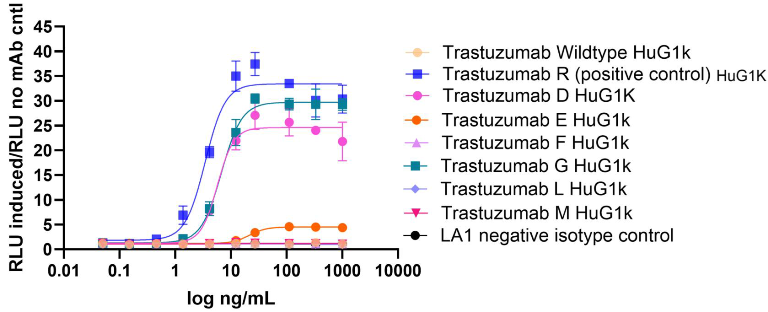 • ADCC/ADCP reporter assays: Surrogate assays to investigate Fc mutants effect on ADCC/ADCP activity using a luciferase signal.
