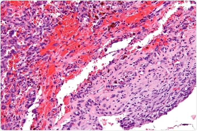 High magnification micrograph of an angiomatoid fibrous histiocytoma, H&E stain. ©Nephron/ commons.wikimedia.org.