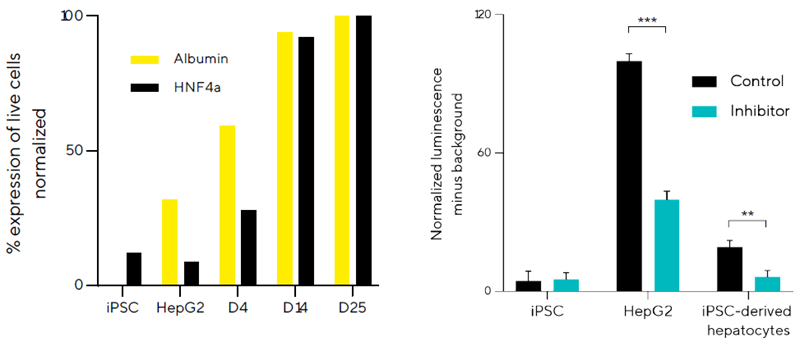 Characterizing expression and functional activity of iPSC-derived hepatocytes