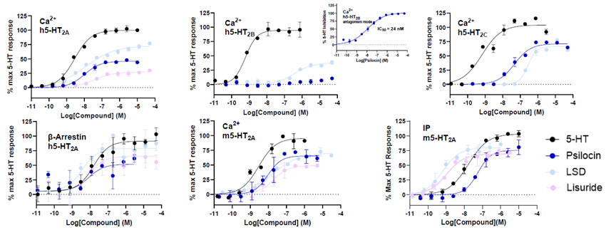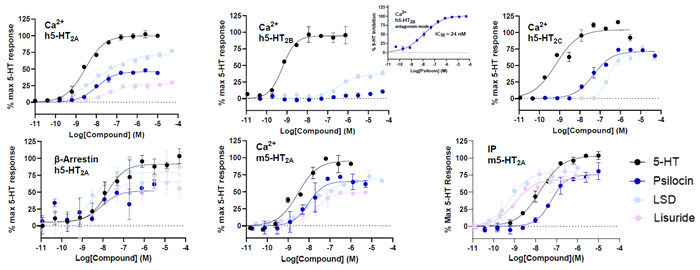 - Full and partial agonism at Ca2+, IP, and β-arrestin pathways, as well as selectivity across 5-HTR, was determined in our cellular assays using human and mouse 5-HTR.