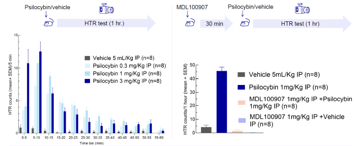 - The Psilocin prodrug, Psilocybin, induced a dose-dependent HTR in mice, a recognized test to detect hallucinogenic drugs. The HTR activity was abolished by 5-HT2AR blockade, validating assay specificity.