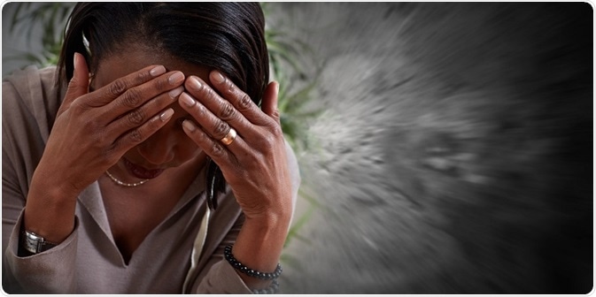 Woman having a migraine headache. Image Credit: kurhan / Shutterstock.com