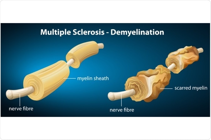 MS is an autoimmune condition where the body’s own immune cells attack this myelin sheath. T cells strip the myelin from the nerve fibers it protects, thus leading the fibers to be exposed and uninsulated. These unprotected nerves are then less able to conduct electrical impulses from the brain to other parts of the body, which causes the nerve signals that are sent to the brain to be delayed and distorted.