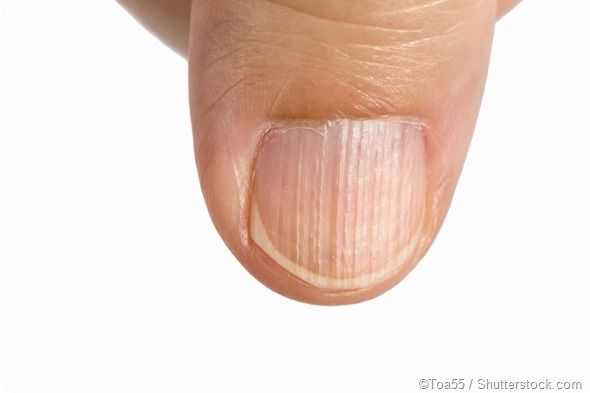Longitudinal ridging refers to the vertical raised lines present on the nails. Along with the ridging, the nails may also be discolored and thickened. A certain number of lines are typically found on all fingernails due to the basic aging process. However, they do not necessarily signal the presence of a health issue.