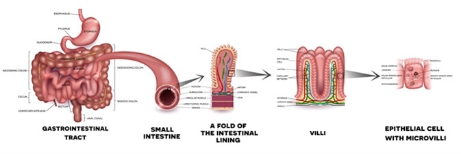 The small intestine is a tubular structure within the abdominal cavity that carries the food in continuation with the stomach up to the colon from where the large intestine carries it to the rectum and out of the body via the anus. The main function of this organ is to aid in digestion.
