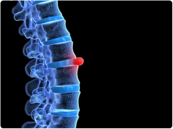 Disc herniation occurs when the annulus fibrous breaks open or cracks, allowing the nucleus pulposus to escape. The intervertebral discs between relatively flexible lumbar vertebrae are particularly vulnerable to prolapse, as this region of the spine bears much of the body’s weight and supports a fairly wide range of motion.