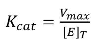 Another important term in enzyme kinetics is Kcat. This is simply a measure of the efficiency of the enzyme, or how much product it can produce in one second. Kcat is worked out using the equation: