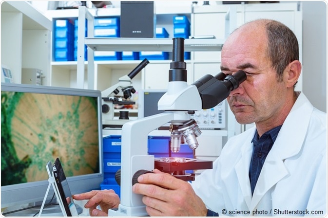 - Placing the microscope slide with the sample to be examined onto the stage and fasten in place.