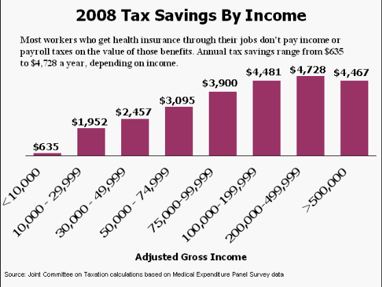 • End the advantage of those who get health insurance through their jobs tax-free over those who buy insurance on their own, who don’t.