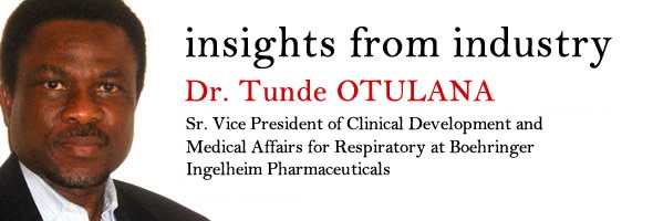 Tunde OTULANA BIG IMAGEDr. Tunde Otulana has been the Sr. Vice President, of Clinical Development and Medical Affairs since May 2013 and the Vice President, Clinical Development and Medical Affairs for Respiratory since December 2011 at Boehringer Ingelheim Pharmaceuticals, Inc.