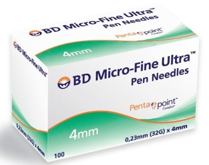 The BD Micro-Fine Ultra™ 4mm Pen Needle is proven to be as effective as longer needles for patients of all body types, and provides equivalent glucose control by more effectively delivering the insulin dose to subcutaneous tissue (the layer of fat below the skin), the recommended site for insulin injections, and reducing the risk of injecting into muscle.  Intramuscular injection can accelerate insulin absorption and increase the risk of hypoglycemia (abnormally low blood sugar). Subcutaneous injection allows the insulin to be absorbed at an appropriate rate, resulting in better glycaemic control.