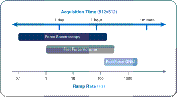 The novel FASTForce Volume mode of Bruker compliments PeakForce QNM in order to offer an extensive range of ramp frequencies.
