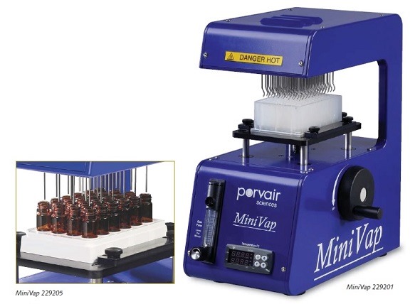 The MiniVap™ blowdown evaporator from Porvair Sciences takes just minutes to remove volatile organic solvents from your 96-well microplates. The MiniVap™ is the perfect tool for labs where smaller numbers of individual plates need drying.