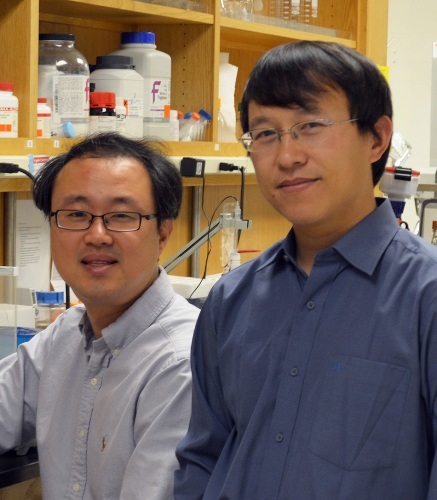 TSRI Associate Professor Qinghai Zhang (right), shown here with Research Associate Sung Chang Lee, was a senior author of both studies.