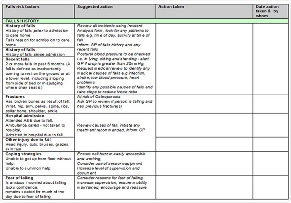 There are fall risk assessments available, but most of them have been designed for people living in hospital or living at home on their own.