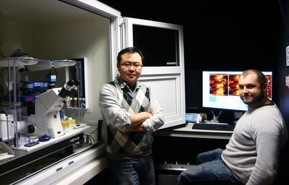Dr Luning Liu with his JPK NanoWizard® system at the University of Liverpool