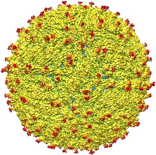 The team found the structure to be very similar to that of other flaviviruses with an RNA genome surrounded by a lipid, or fatty, membrane inside an icosahedral protein shell.