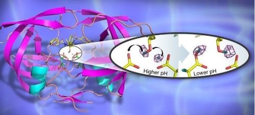 By determining structures at different pHs, the group was able to directly observe the positions of hydrogen atoms before and after a pH-induced two-proton transfer between the drug and enzyme. The low-pH proton configuration in the catalytic site, critical for the catalytic action of this enzyme, was shown to be triggered by electrostatic effects arising from protonation state changes of surface residues far from the active site. These details can help assist in the design of new more effective ART drugs and were only possible through the use of neutron crystallography.
