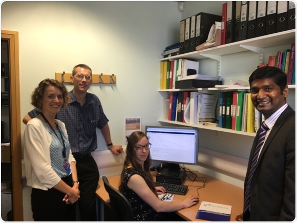 The Christie sees up to 60% reduction in VMAT Verifications with advanced automation software. [From left to right: Catherine Harris, Clinical Scientist – treatment planning; Geoff Budgell, Team Leader Verification & Dosimetry; Emma Walker, Clinical Scientist at The Christie; Raj Baskara, Sales Specialist at Oncology Systems Limited]