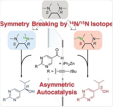 The preparation of chiral compounds as intermediates in drug synthesis is one of the most important targets in synthetic organic chemistry. Japanese scientists have now shown that the autocatalytic preparation of a chiral intermediate can be triggered by a compound bearing hidden chirality, which consisted of nothing more than the difference between the isotopes nitrogen-15 and nitrogen-14. The study is published in the journal Angewandte Chemie.