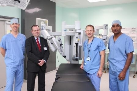 Surgeons (l-r) Jim Catto, Alan Gillespie, David Yates and Derek Rosario with the Da Vinci robot