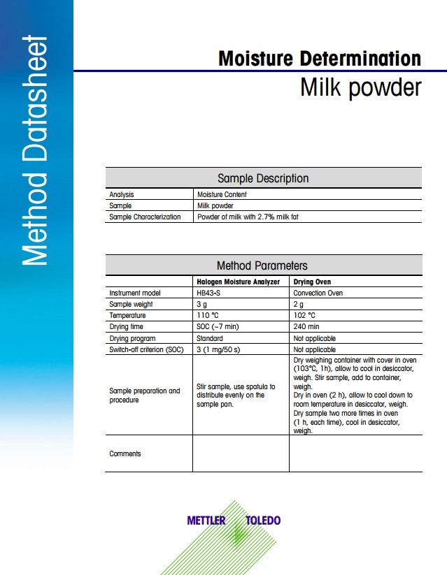 Establishing a reliable protocol that provides results comparable to the standard method is a prerequisite. METTLER TOLEDO has performed this initial research for more than 120 sample types and cross-validated them against reference methods to help develop an effective and robust method for distinct samples in the lab. These methods are available online via the Moisture Application Library.