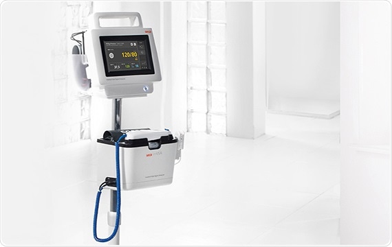 The monitoring of vital signs is one of the most time-consuming activities in hospitals and medical practices. The seca mVSA was developed to support these routine checks and lighten the workload. All vital parameters and BIA data are captured quickly by one device and stored directly in the digital patient files. As a part of the seca 360° wireless product world, the seca mVSA provides automatic transmission of height and weight from compatible scales and measuring systems to the device. The benefits are clear: efficiency improvements, time-saving procedures and paperless and error-free transmission of measurements.