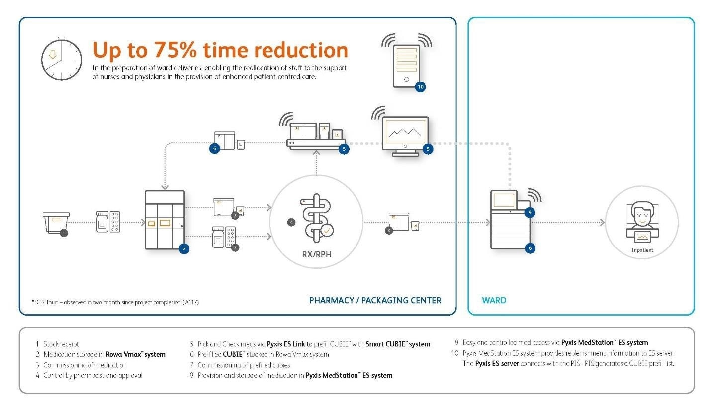 BD (Becton, Dickinson and Company), a leading global medical technology company, today announced the STS AG Hospital in Thun, Switzerland has become the first hospital in the world to introduce a fully automated hospital wide prescription medicines supply chain, enabling, safe, secure, timely and efficient delivery of patients’ medicines from the central pharmacy to the ward or care unit. The increased automation reduces the risk of preventable medication errors and helps to improves safety for patients across the hospital.
