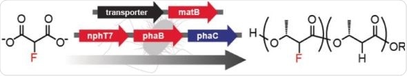 Natural organic compounds that contain fluorine are rare because living organisms—with a few exceptions—do not produce them. American scientists have now genetically engineered a microbial host for organofluorine metabolism, allowing it to produce a fluoridated intermediate known as a diketide. As reported in the journal Angewandte Chemie, the diketide could then be used as a monomer for the in vivo production of fluorinated bioplastics.