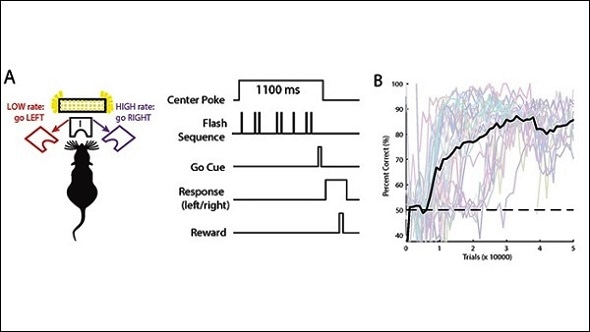 The researchers trained a large group of mice to distinguish between high and low rates of flashing light and found that the animals employed a decision-making strategy more similar to that used by nonhuman primates than rats. They also identified a brain region that may be part of a circuit supporting this strategy. The research paves the way for manipulation of such a circuit, to be further defined in the future, with powerful techniques to probe its structure and function.