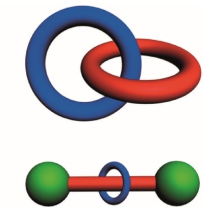 Graphical representations of a catenane and a rotaxane. © Stoddart, J. Fraser. "Mechanically interlocked molecules (MIMs)—Molecular shuttles, switches, and machines (Nobel Lecture)." Angewandte Chemie International Edition 56.37 (2017): 11094-11125.