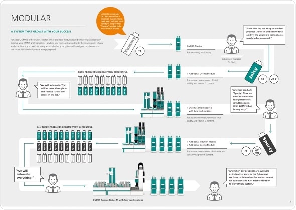 OMNIS gives laboratories the flexibility to respond to new challenges as they arise. Hence, the platform can be expanded at any time to provide additional capacity for new applications and/or higher sample throughput. This is done by adding the required hardware, e.g. another titration module, another work station, or even a robotic autosampler to the existing platform.