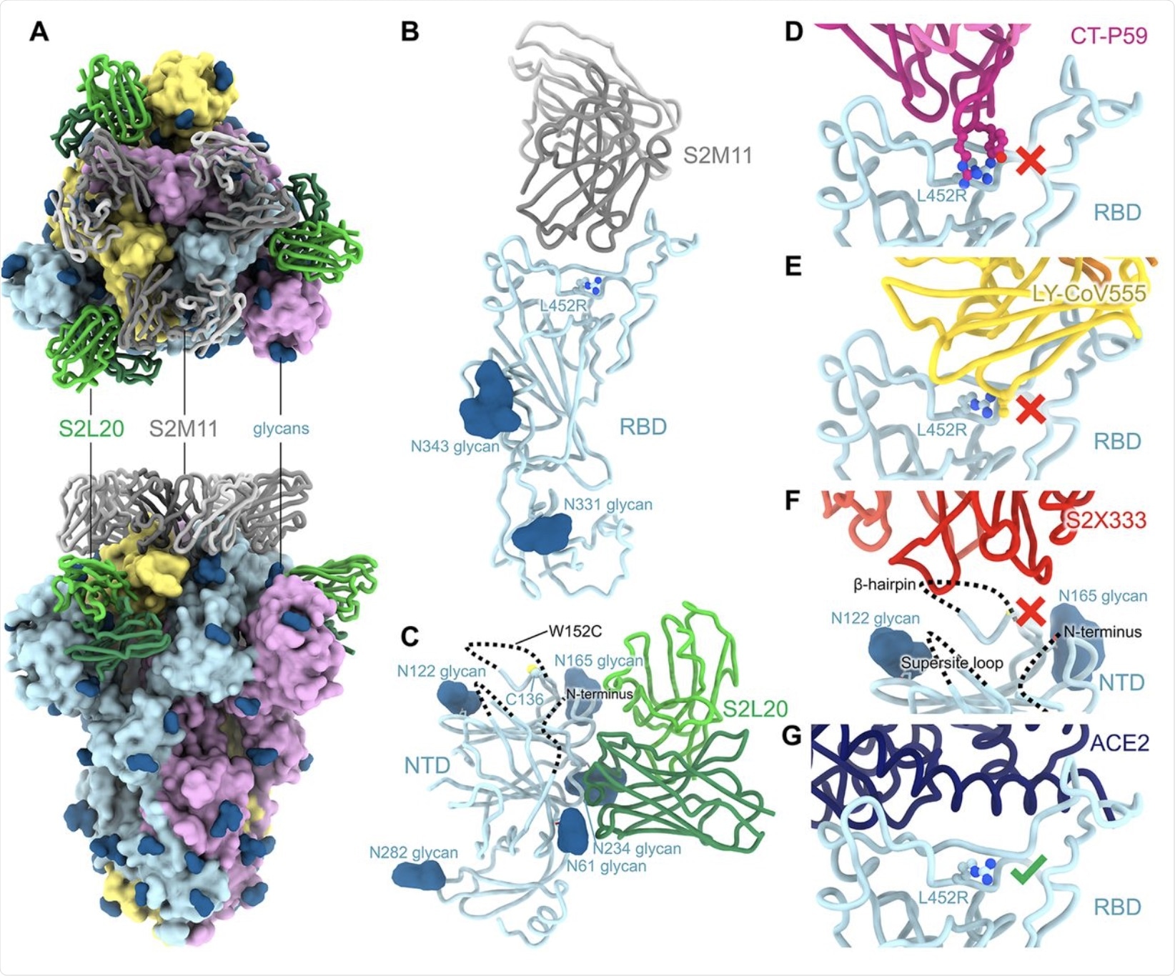 The investigators suggest that the L452R mutation was acquired by multiple lineages as a result of positive selection following the exposure of the virus to RBD-targeting neutralizing antibodies. The effect is immune evasion by altered binding of several RBD-specific antibodies.
