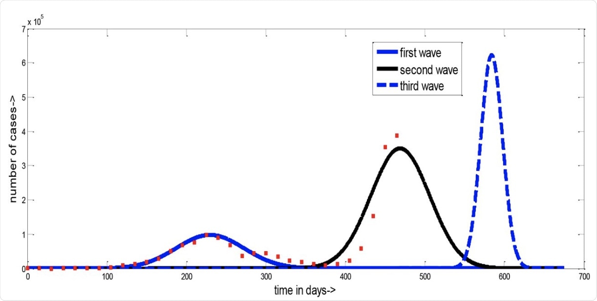 In India, which has a massive population of almost 1.37 billion, the first wave peaked in September 2020, while the second wave has been continuing to cause devastation since the beginning of April 2021. Using their formula, the researchers estimated that the highest single-day case peak during the second wave would be 350,000 on May 14, 2021, from a starting number of 8,600 on February 1, 2021.