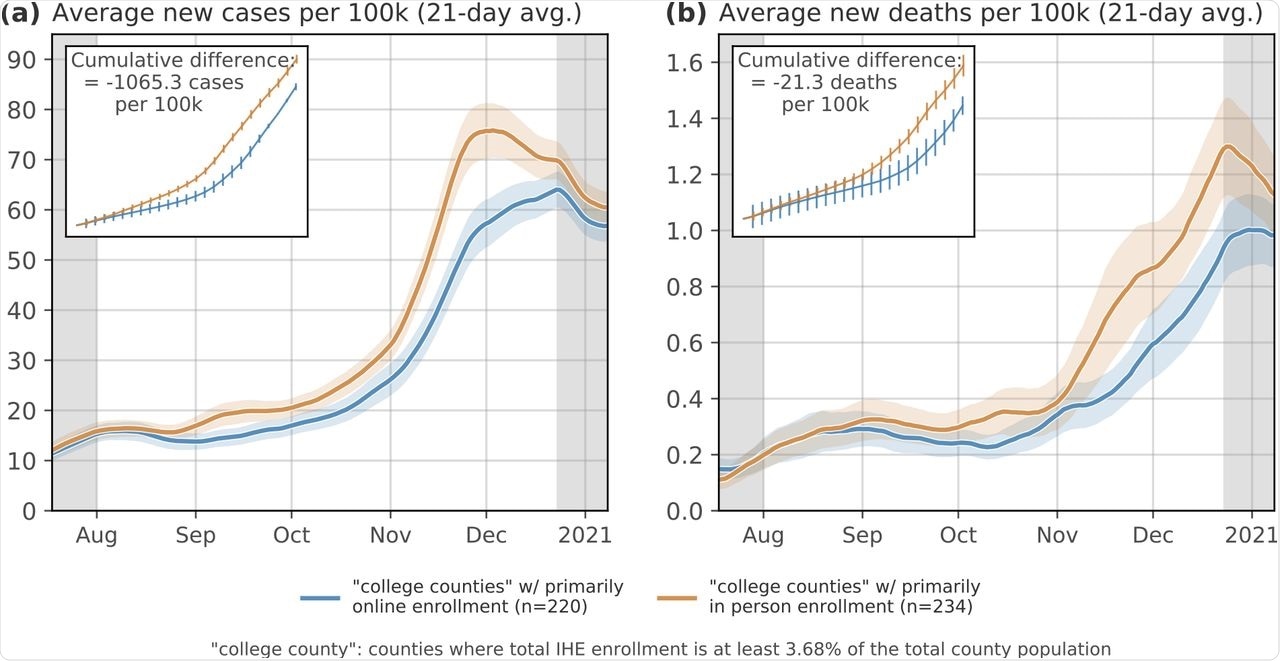 The current study highlights clear differences in COVID-19 outcomes based on IHE reopening policy. Since large numbers of young adults who are likely to have increased mobility and less likely to practice COVID-19 mitigation behaviors are enrolled in HIEs, the researchers concluded that campus testing in counties with a large student population can play a relevant role in mitigating the number of COVID-19 outbreaks in the surrounding population.