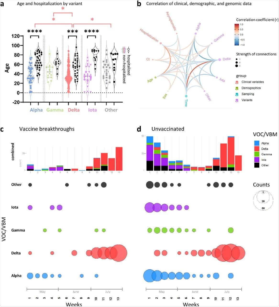 The researchers merged the present study results with previous study data from 208 breakthrough infections and 1,329 control sequences between February and April 2021. To this end, they found that the pattern of total COVID-19 case numbers over time is comparable to their SARS-CoV-2 sequences in New York State and supports their initiative of sequencing these SARS-CoV-2 emerging variants.