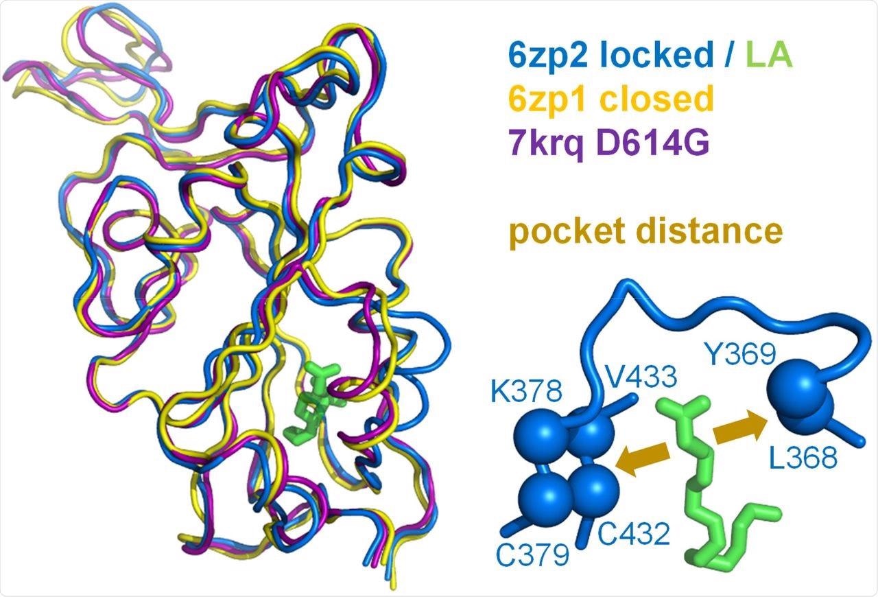 The present study examined a range of S RBD structures of coronaviruses, including those with D614G mutations such as the SARS-CoV-2 Delta and the Omicron variants. The researchers also closely inspected the LA binding RBD pocket to observe the open (RBD up) and closed (RBD down) conformations.