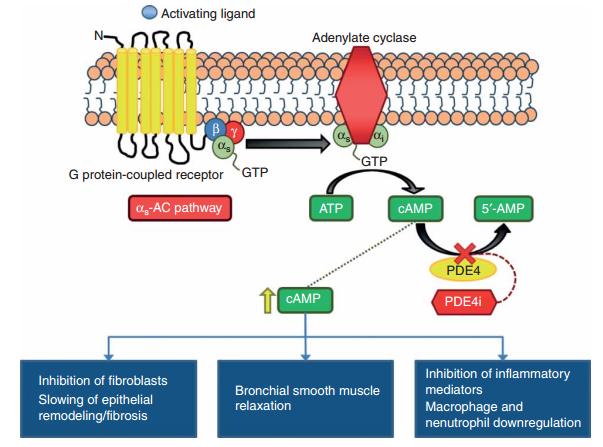 PDE4 inhibitors mechanism of action. Image Credit: DOI:10.1517/13543784.2015.1094054