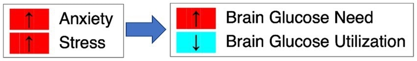 Metabolic abnormalities have been reported in AN, with genetic studies implicating metabolic traits as risk factors for AN. Stress increases glucose allocation to the brain, albeit its utilization (in the brain) is not elevated. This increased glucose need may deplete energy resources, and reduced utilization may result in overeating.